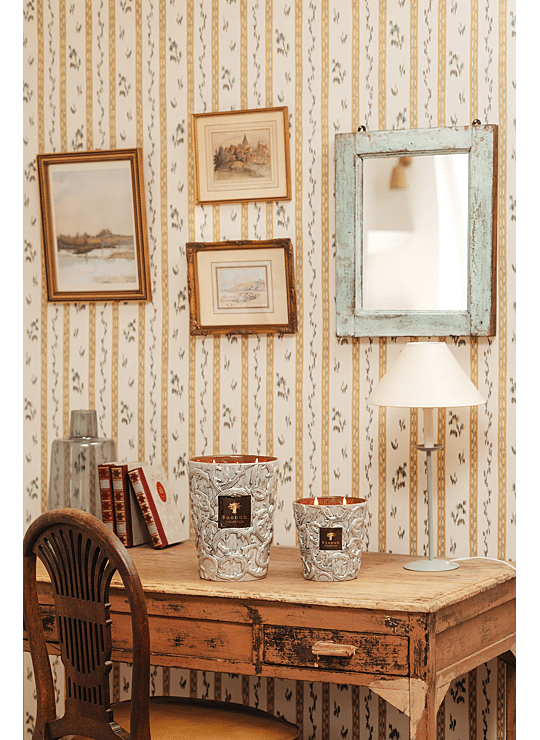 Als een eerbetoon aan het heilige bos, belichaamt de Sylvanus-kaars, die de naam draagt van de Romeinse god van het bos, de vreedzame kracht van de natuur.Met de hand gemaakt in Portugal door keramiekkunstenaars met een uitzonderlijke knowhow, doet zijn grijsgroene glazuur met subtiele glinsteringen denken aan de koelte van bossen. De binnenkant is bekleed met een matte chocoladekleurige glazuur die past bij het etiket. De keramiek versierd met hertengeweien is een echt symbool van wilde waardigheid en vernieuwing. Zoals een uniek stuk, belichaamt deze kaars het perfecte evenwicht tussen artisanale traditie en mythologische inspiratie.