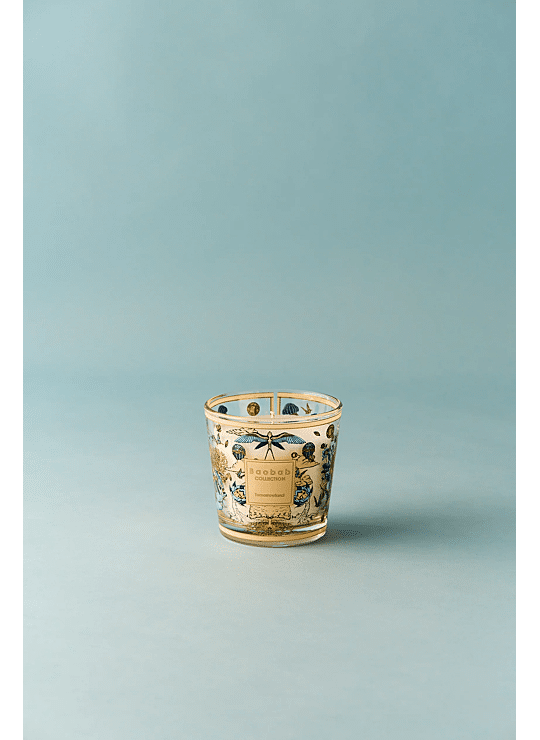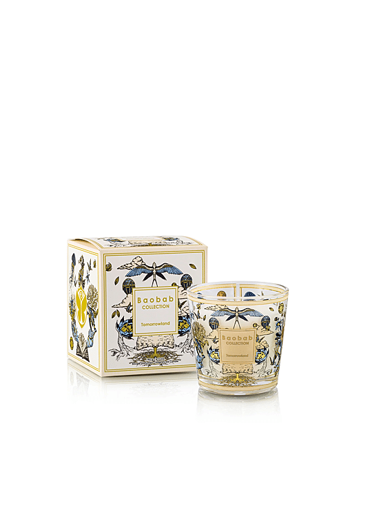 De geurkaars My First Baobab Tomorrowland in verfijnd diepblauw is versierd met met de hand aangebrachte gouden illustraties die geïnspireerd zijn op de legendarische thema’s van het festival. De moederboom, de mythische vogels, de vlinders en de zeedieren van Planaxis vormen samen een visuele symfonie van transformatie en verwondering.