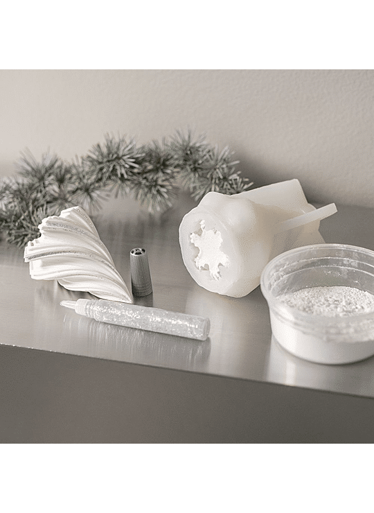 Met deze set kunt u twee kerstbomen in sneeuwwitte tinten en met mooie glitterdetails vormen. De set bevat alle materialen en instructies die u nodig hebt.