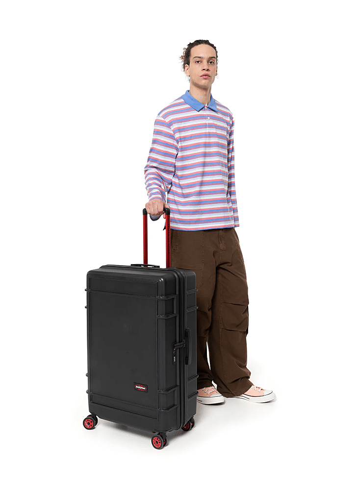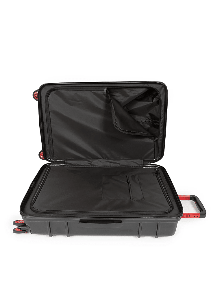 Deze grote koffer met harde buitenkant heeft twee vakken met rits, voor lange reizen en langere verblijven. Deze lichtgewicht koffer valt op dankzij rode accenten, een 'Built To Resist'-logo op de handgreep en 360 graden draaiende Japanse wieltjes.