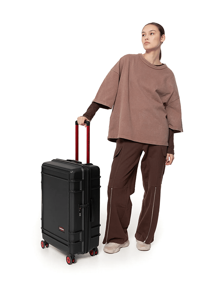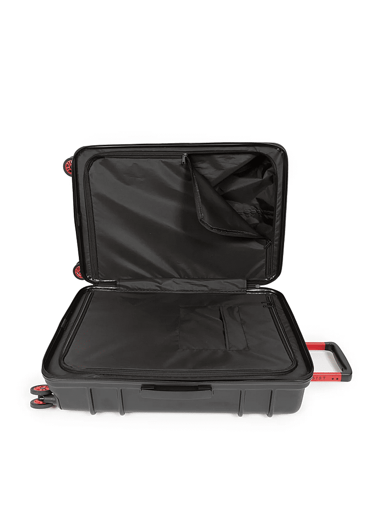 Deze middelgrote koffer met harde buitenkant heeft twee vakken met rits, voor een weekje weg of een langer verblijf. Deze lichtgewicht koffer valt op dankzij rode accenten, een 'Built To Resist'-logo op de handgreep en 360 graden draaiende Japanse wieltjes.