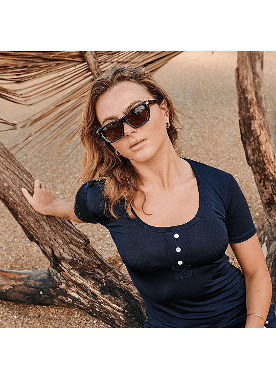 Maak kennis met onze nieuwste interpretatie van de cat-eye vorm, vervaardigd uit duurzame polycarbonaat monturen. Cate is de zonnebril die je moeiteloos opzet bij elke gelegenheid — van een drukke weekdag tot zonnige stranddagen op vakantie. Een tijdloze klassieker die nooit uit de mode raakt.